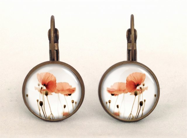Ręcznie robione kolczyki wiszące z wysokiej jakości grafiką pokrytą wypukłym, powiększającym szkiełkiem.