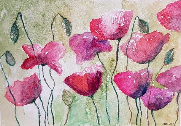 Praca wykonana techniką mieszaną (akwarela, kredki akwarelowe ) na papierze fabriano 300g/m2, format A5. Zapraszam :)