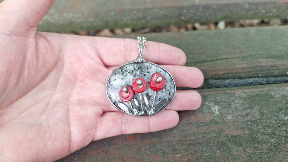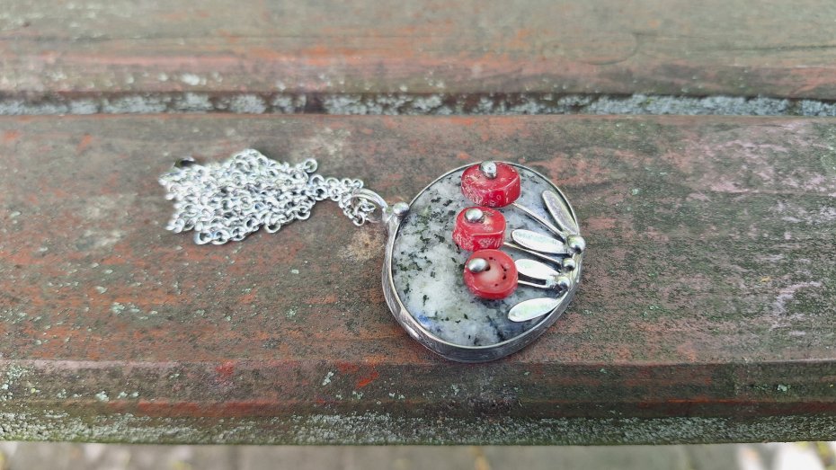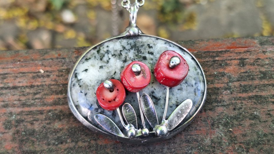 Tagi: #jaspis, #koralowiec, #wisiorek z kamieniem, #wisiorek z kwiatami