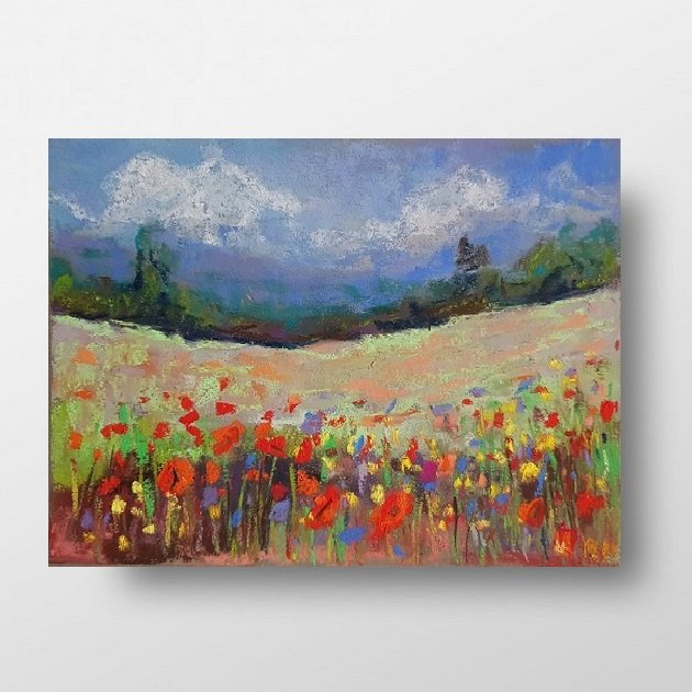 Praca wykonana pastelami suchymi na papierze przeznaczonym do pasteli 250 g/m2, format A5. Rysuję kredkami Sennelier/Rembrandt (praca przedstawiona w przykładowej ramie). Rysunek zabezpieczony fiksatywą. Zapraszam :)