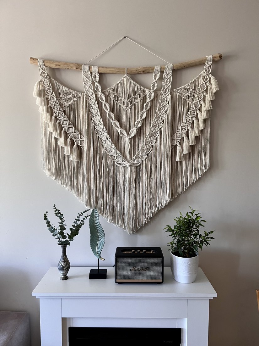 MAKRAMA 90CM PIĘKNA OZDOBA ŚCIENNA MAKRAMOWE WZORY