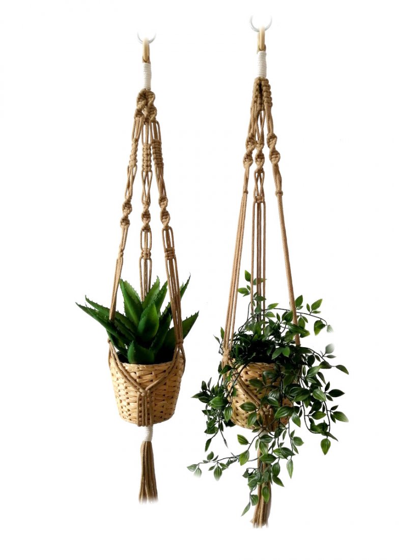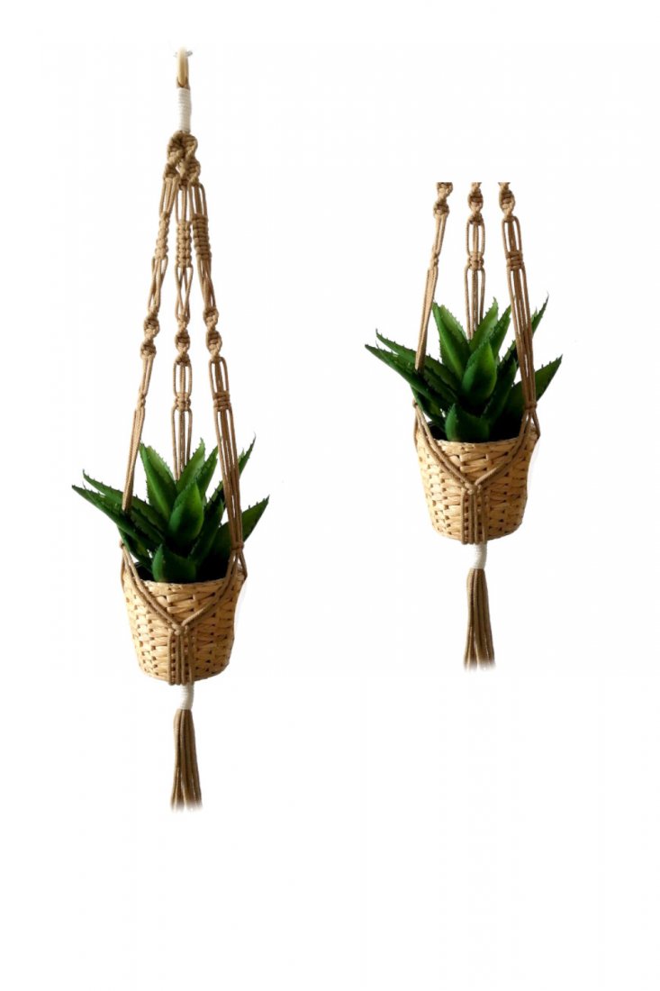 Ożyw swoje wnętrza unikalnymi kwietnikami makrama! Nasz zestaw 2 sztuk kwietników w odcieniach beżu z dodatkiem ecru to idealna harmonia elegancji i boho stylu. Ręcznie wykonane z wysokiej jakości sznurka, nasze kwietniki zachwycają wyrafinowanymi wzorami makramowymi, które dodają wyjątkowego uroku każdemu pomieszczeniu. Wykorzystaj je do prezentacji roślin doniczkowych, dodając swojemu domowi oryginalny akcent przyrodniczy. Uchwyć esencję stylu boho i dodaj nutę natury do swojego wnętrza dzięki naszym kwietnikom makrama!