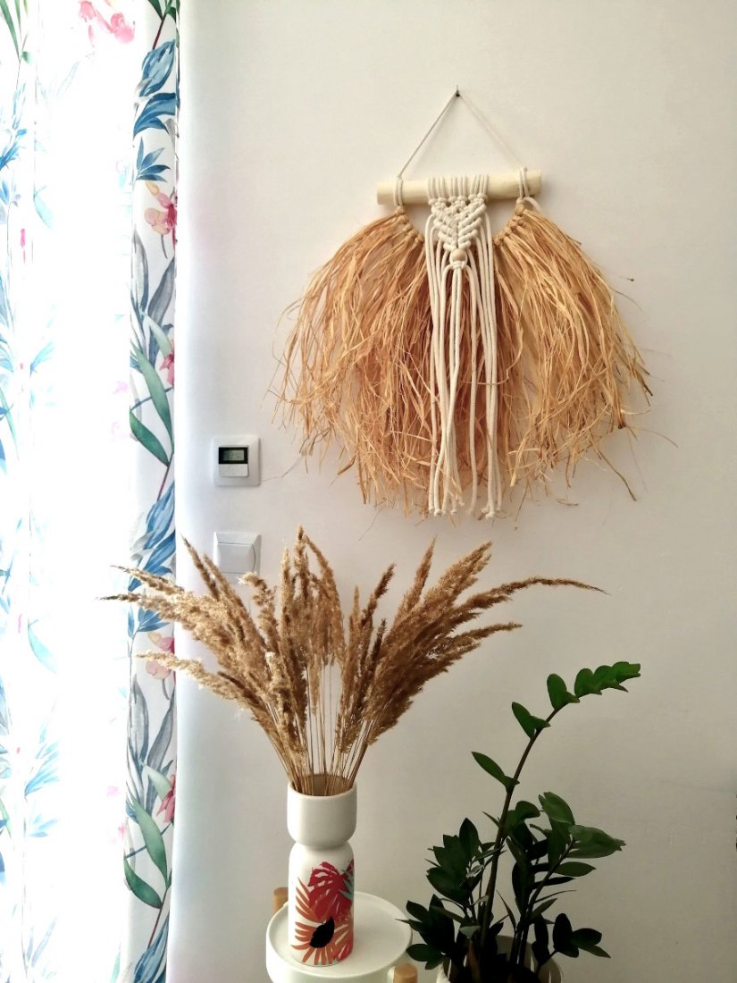 Oryginalna dekoracja ścienna, mała makrama.