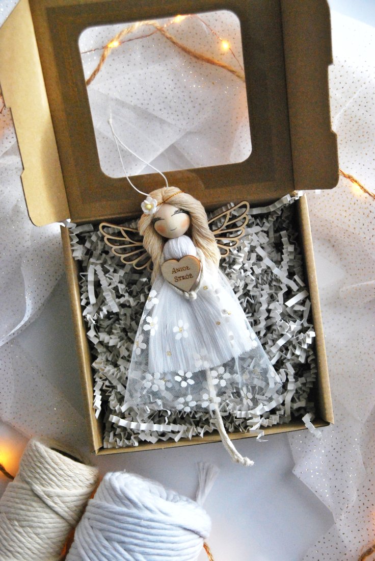 Aniołek jest starannie zapakowany w eleganckie pudełko z okienkiem - gotowy, by wręczyć go od razu po otrzymaniu.