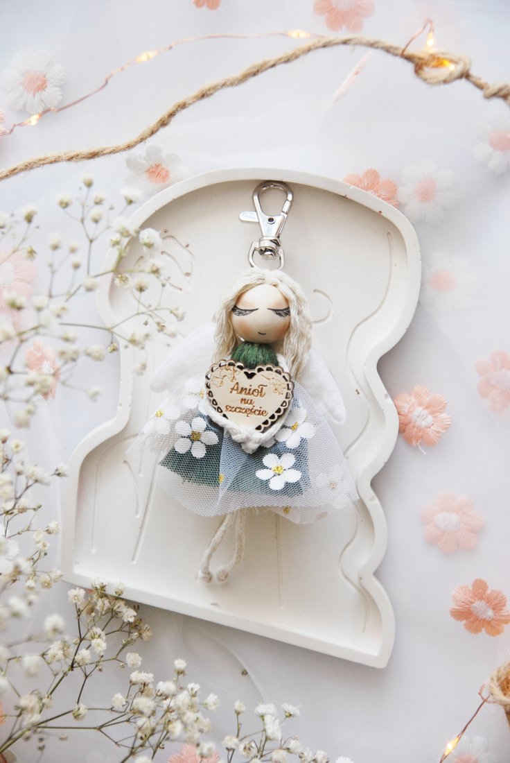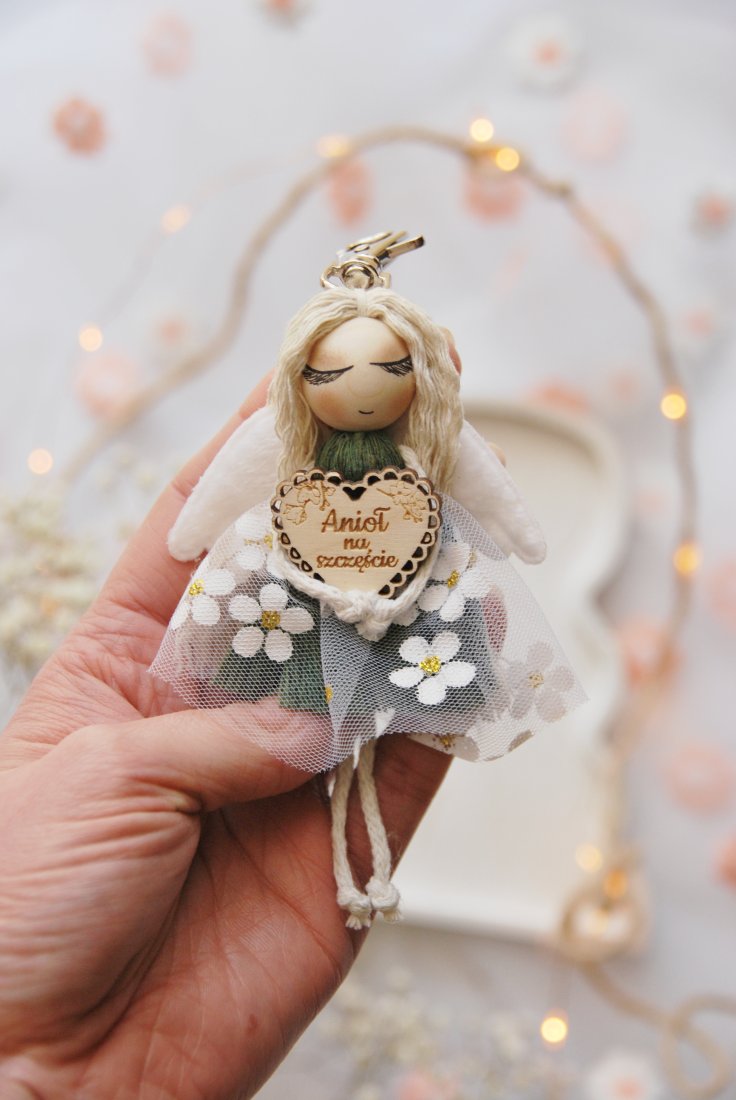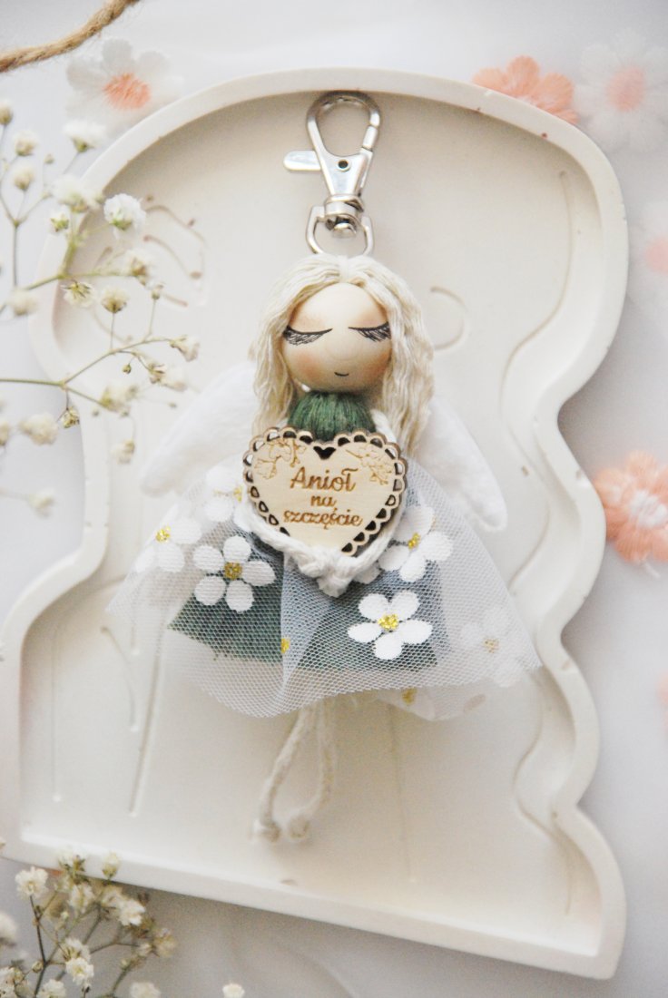 Uroczy brelok do kluczy - aniołek na szczęście - kolor zielony.