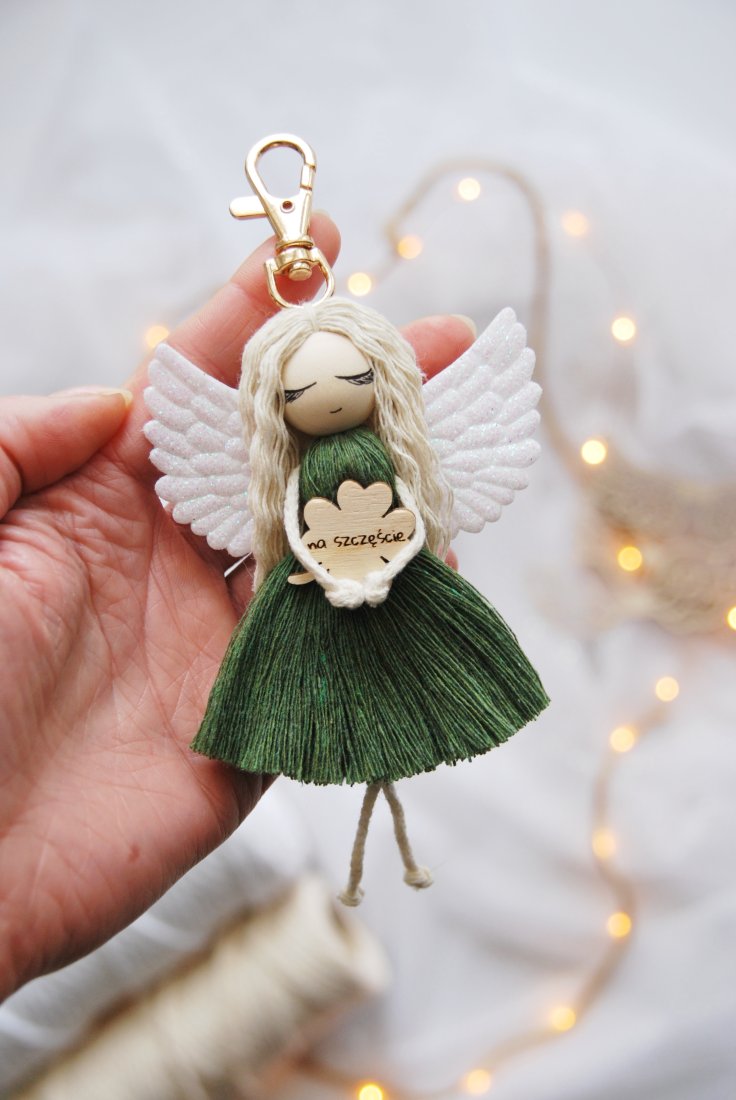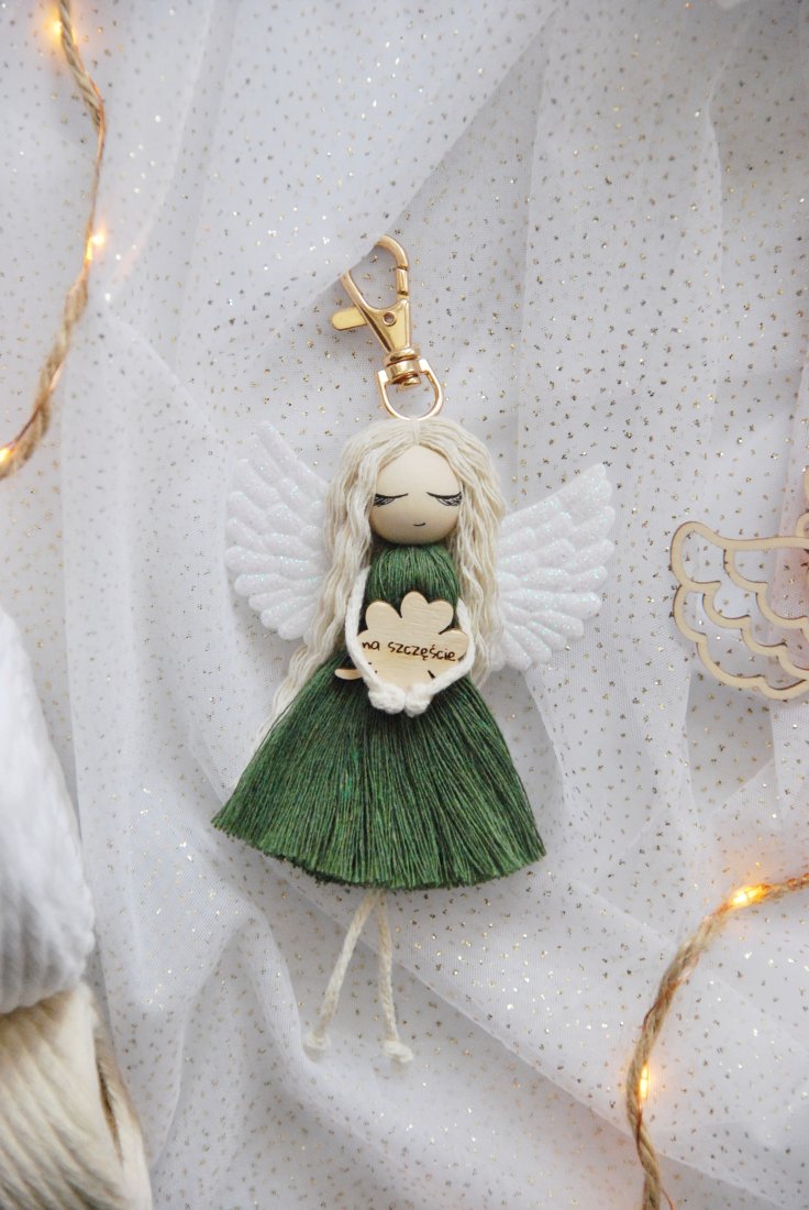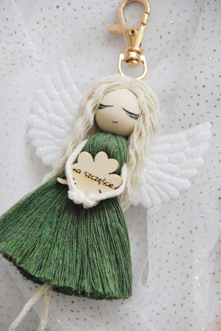 Uroczy brelok do kluczy - Anioł Stróż na szczęście - kolor zielony.