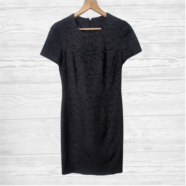 Piękna sukienka typu mała czarna w wytłaczany drobny roślinny motyw.