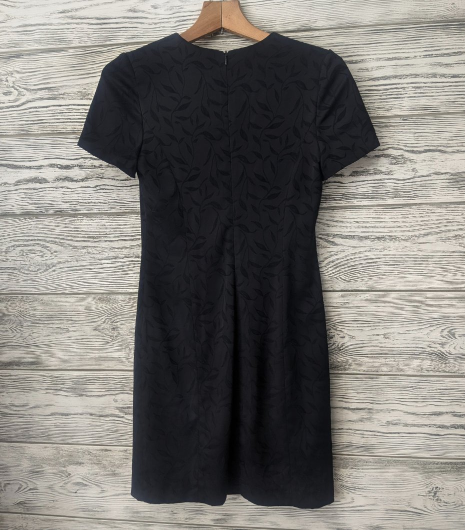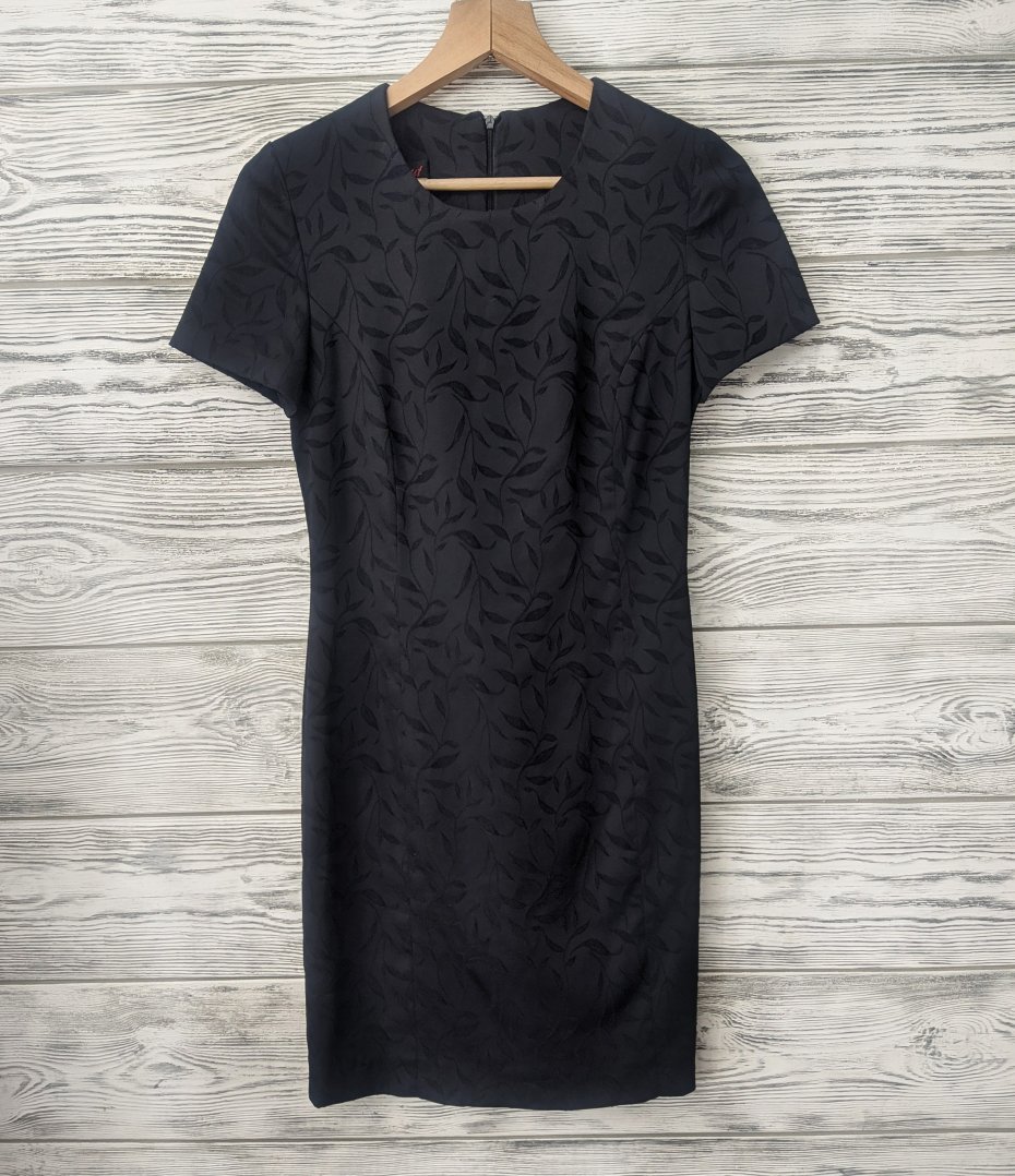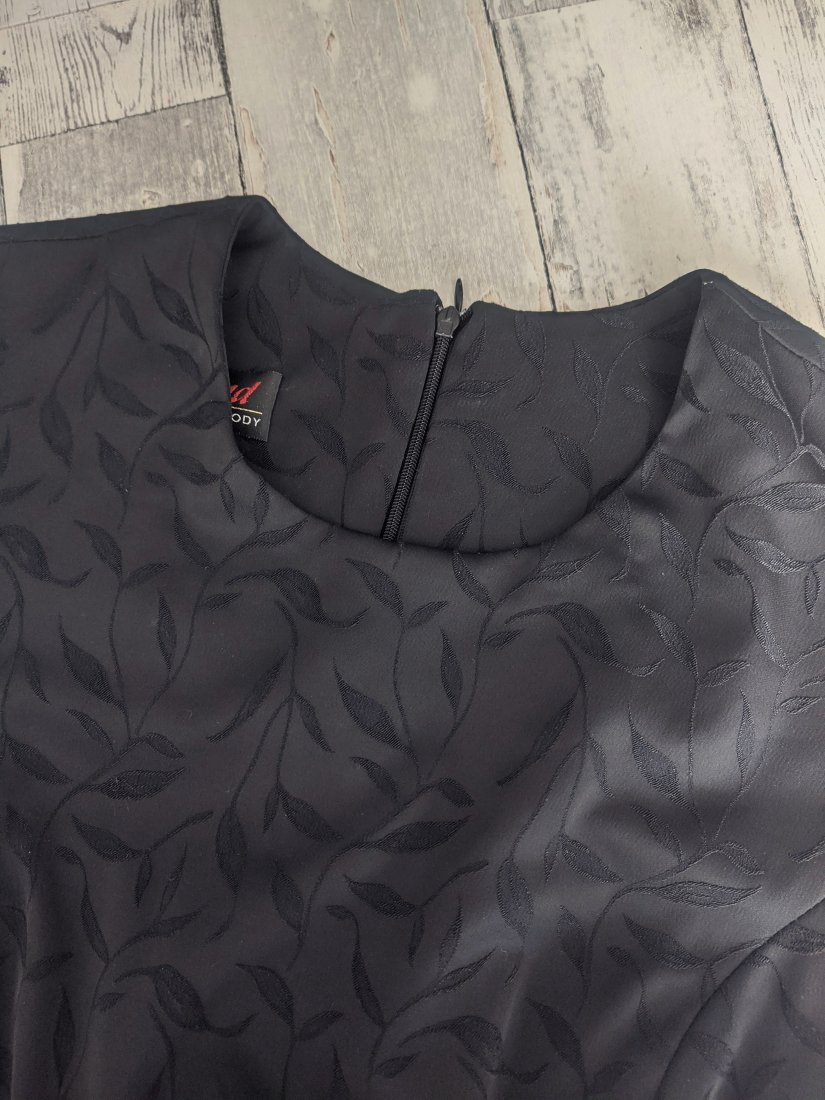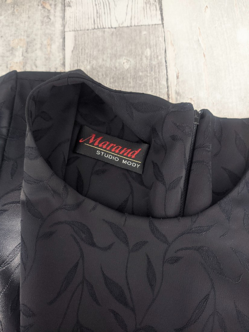 Piękna sukienka typu mała czarna w wytłaczany drobny roślinny motyw.