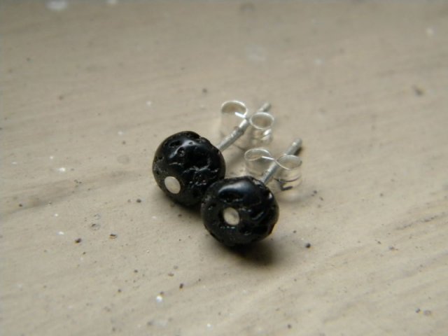 kolczyki ze srebra 925 i lawy o średnicy 6mm