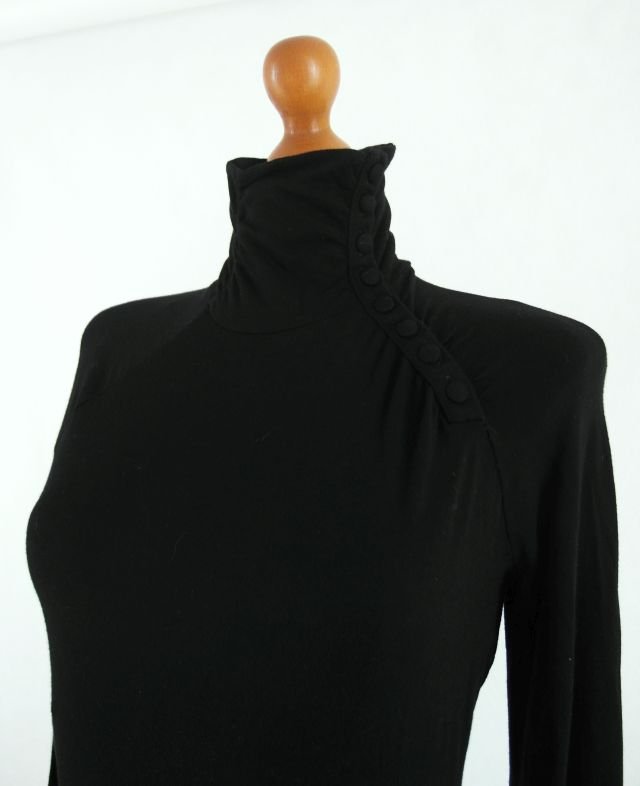 golf obszyty z jednej strony guzikami (odpinają się) oraz dłuższe mankiety również z guzikami.Nie jest gruba, dobrze wygląda z paskiem.