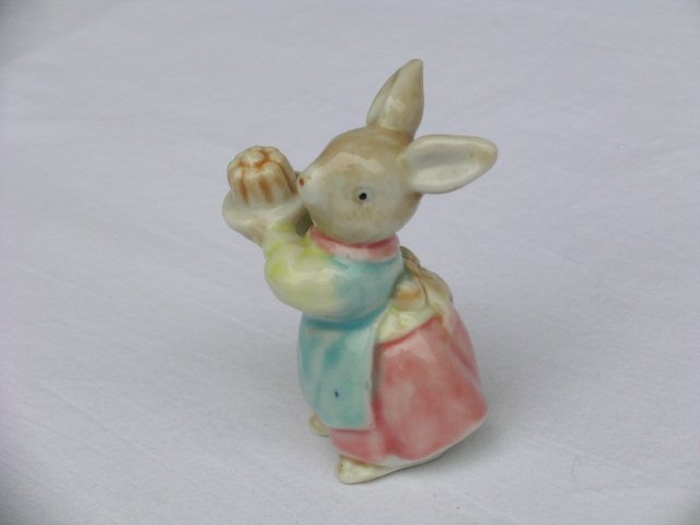 Porcelanowa figurka gościnnej Pani Zajęczycy, najpewniej postaci z opowieści Beatrix Potter. Ręczne barwne malowanie, błyszczące szkliwienie. 5,5 x 4 x 7 cm. Stan zachowania bardzo dobry.