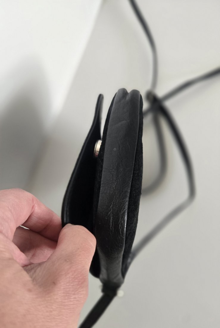 Używana w dobrym stanie. Skórzana. We wnętrzu mała zamykana na zamek kieszonka. Wymiary: