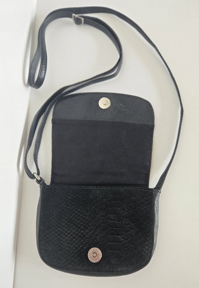 Używana w dobrym stanie. Skórzana. We wnętrzu mała zamykana na zamek kieszonka. Wymiary: