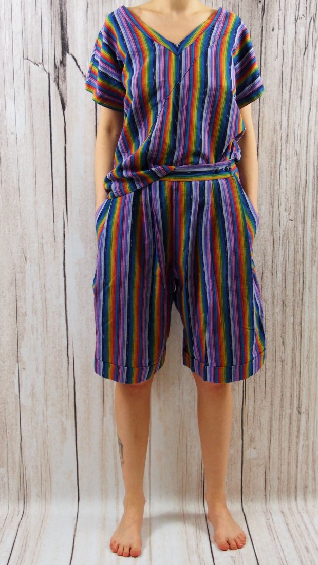 Małe dzieło sztuki składające się ze spodenek i bluzki z bawełnianego płótna. * Autentyczny malajski strój od Santiago Atitlan, Gwatemala. Ceny samych bluzek na zagranicznych portalach vintage to ok 200-300zł, spodenek podobnie.