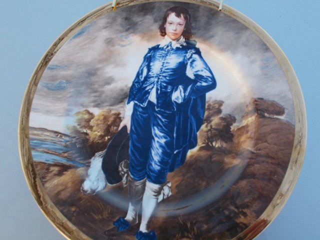 Porcelanowy Talerz kolekcjonerski. Sygnowany FINSBURY Fine Bone China Made in England. Szlachetnie dzwięcząca porcelana, fantastyczne zdobienie. Bogate złocenie rantu. Kolory ciekawe, nasycone,a niebieski mlodzieniec ...jako żyw z poważną miną, dumny i dziecinny jednoczęśnie. Co z niego wyrośnie ? Strój jego nieco satynowy, lekko wyczuwalny od palcem...pięknie namalowany obraz cały ;)