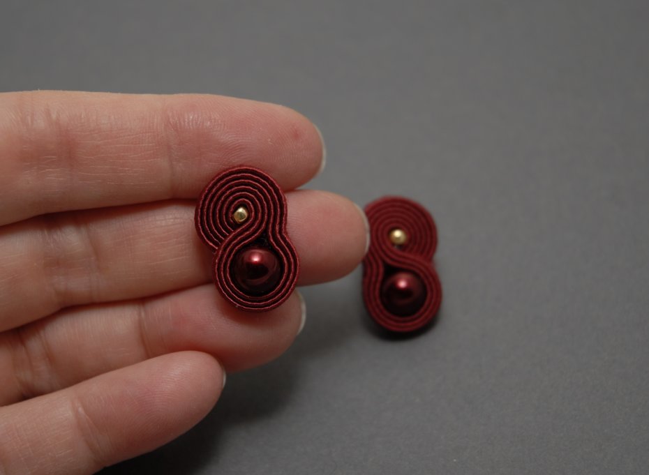 oferuję kolczyki zrobione techniką sutasz, ozdobione koralikami