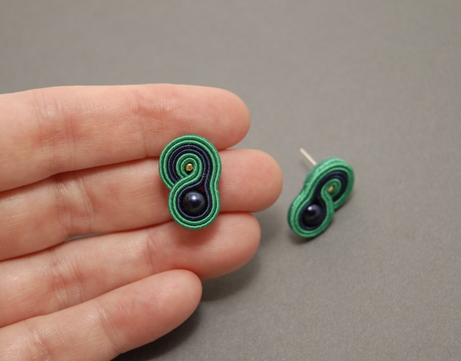 oferuję kolczyki zrobione haftem sutasz, ozdobione koralikami