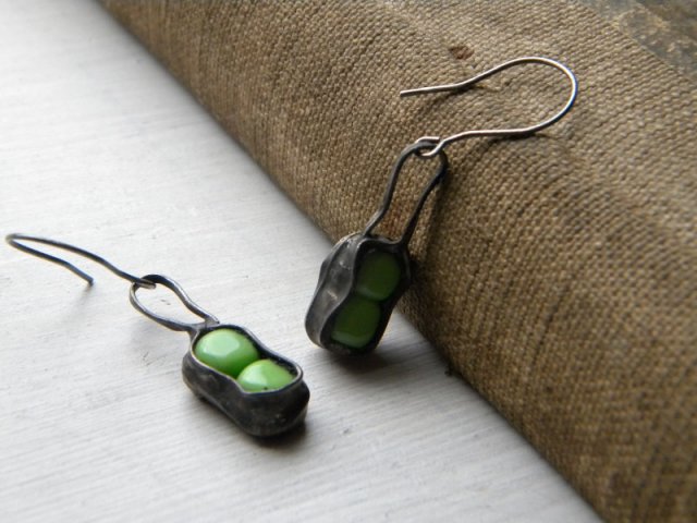 niewielkie kolczyki ze szkła i miedzi,stylizowane na stare srebro. zawieszki z oksydowanego srebra próby 925. długość całkowita 4,4cm.bardzo lekkie. szkło wyrób własny.