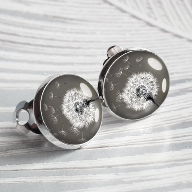 Oryginalne klipsy z piękną grafiką, zatopioną pod wypukłym szkiełkiem ( tzw. szklanym kaboszonem dającym delikatny efekt trójwymiarowości), w posrebrzanej oprawie. Grafika jest najwyższej jakości, wywołana na papierze fotograficznym. Biżuteria hipoalergiczna. Urocze, delikatne klipsy. Wielkość -średnica- 1,5 cm.