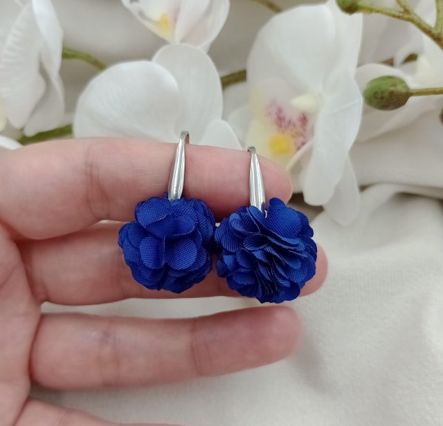 Kolczyki wykonane ręcznie, z wiskozy formowanej w płatki kwiatów.