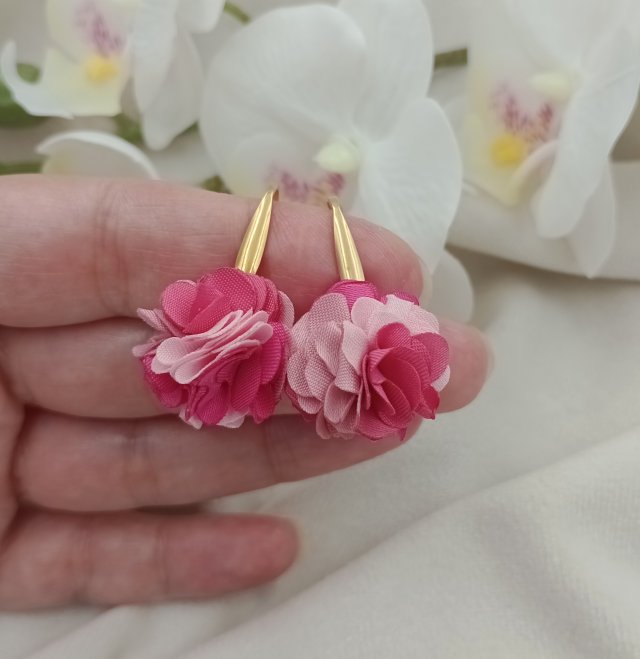 Kolczyki wykonane ręcznie, z wiskozy formowanej w płatki kwiatów.