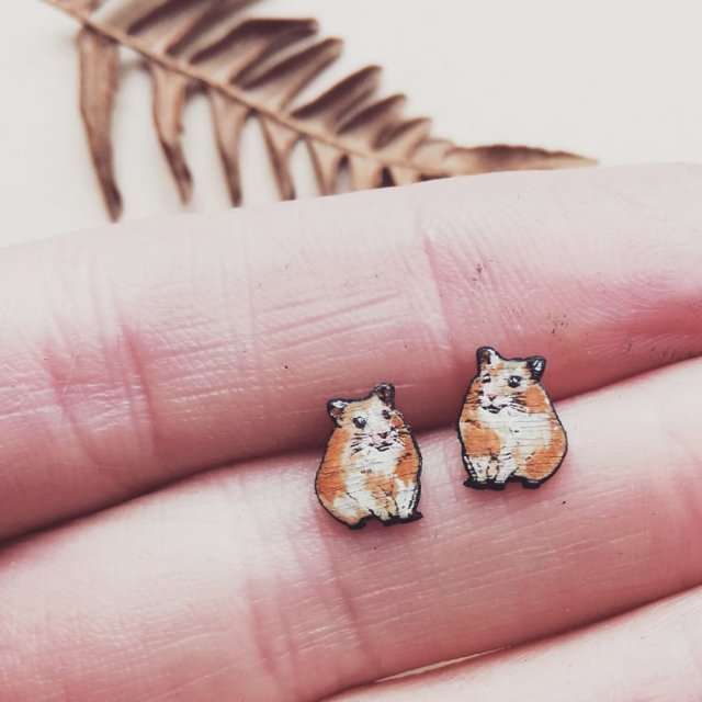 Lekkie kolczyki-sztyfty wykonane na podstawie autorskiego rysunku. Zrobione z drewna i lakierowane. Każda para będzie niepowtarzalna. Wielkość ok 1, 3cm. Sztyfty nie uczulą, bo są z silikonu!