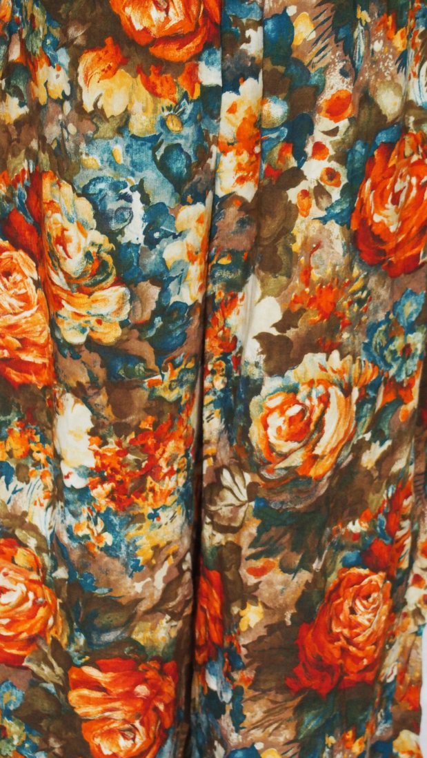 Artystyczne szerokie bawełniane spodnie marki GALLERY. W róże malowane niczym pędzlem malarza.