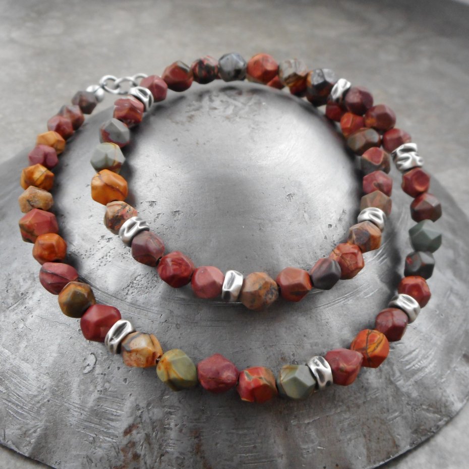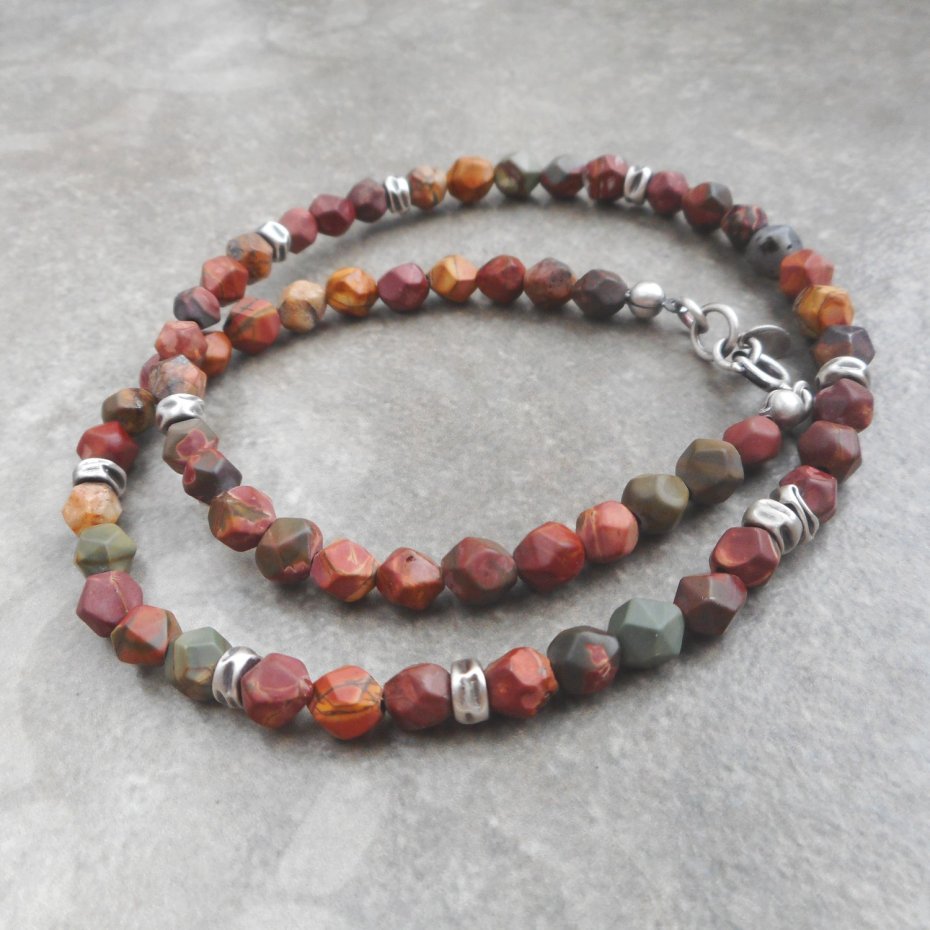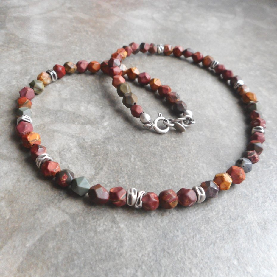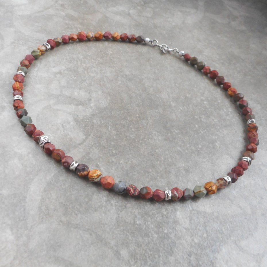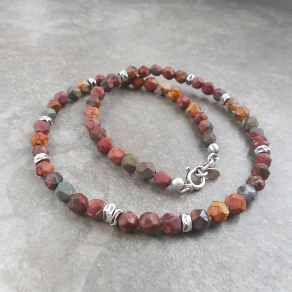 Piękny, bardzo kobiecy naszyjnik wykonany ze szlachetnego srebra i kamieni naturalnych; dla wielbicielek kolorów ziemi, niesamowicie wybarwione jaspisy!