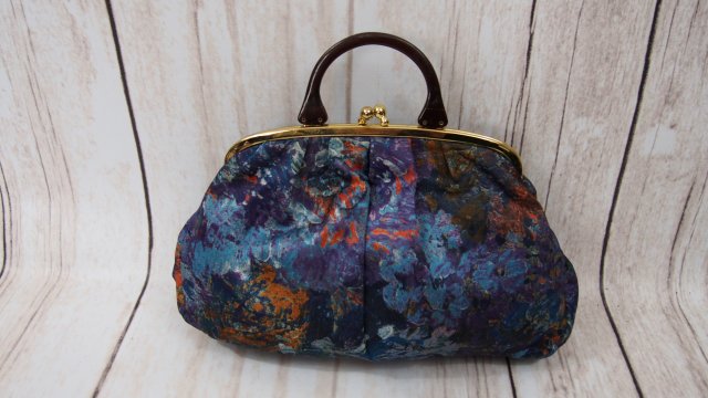 Torebka do ręki z dawnych lat. W środku "ceratowa" podszewka. W piękny wzór niczym obraz.
