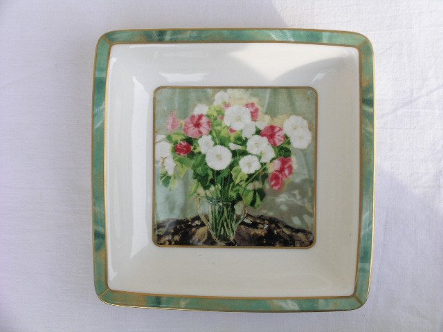 Naczynie paterowe, porcelanowe, z reprodukcją wyjątkowego malwowego bukietu pędzla samego Sir Winstona Churchilla. Edycja z roku 2005 roku. Błyszczące szkliwienie i jakość wykonania i malatury. Złocenia. Fantastyczna rzecz do kolekcji i na niespotykany i ciekawy prezent :)