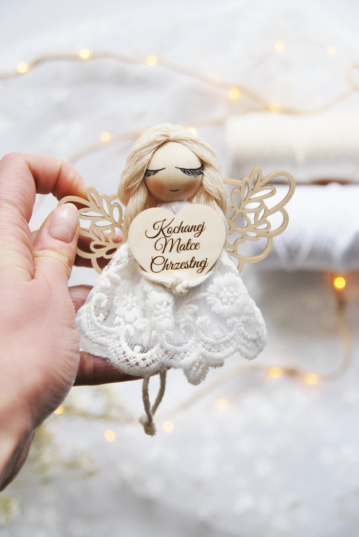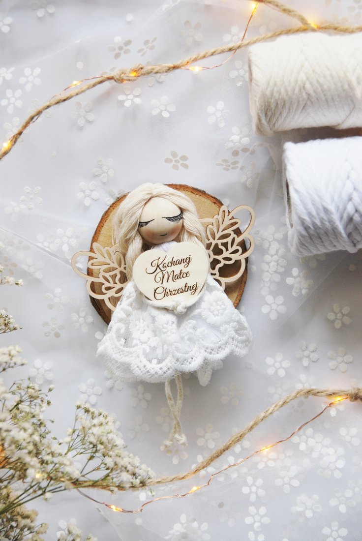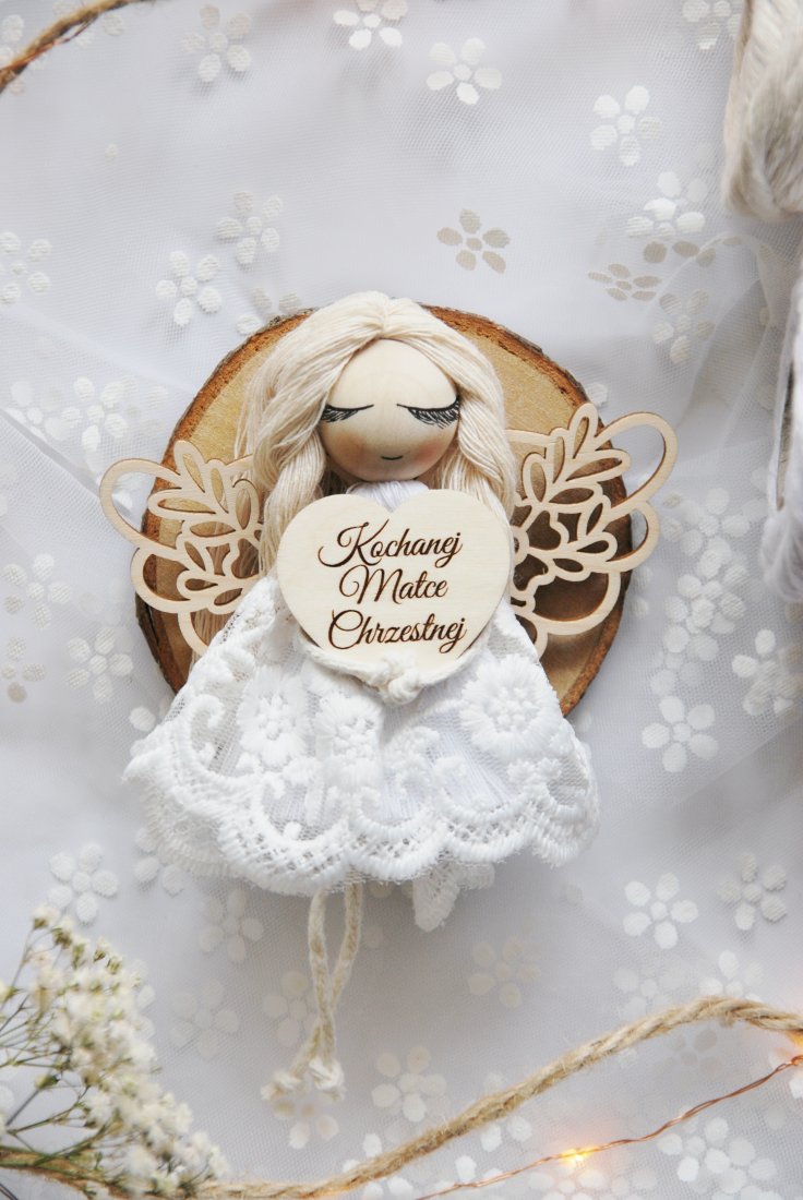Wyjątkowe i pełne symboliki podziękowanie dla matki chrzestnej, która towarzyszy dziecku w najważniejszych dniach jego życia. Ręcznie wykonany aniołek z dedykacją to prezent niosący ze sobą wdzięczność, ciepło i duchowe znaczenie.
