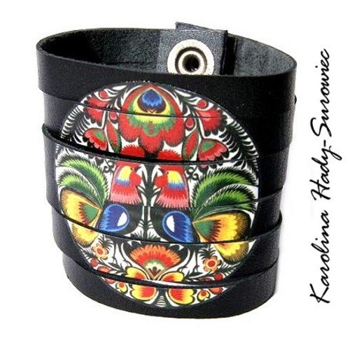 autorska bransoletka wykonana z naturalnej czarnej skóry ,
