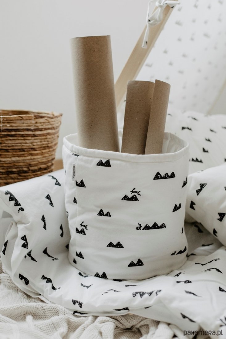 Kosz w prosty i ponadczasowy wzór góry i króliczki.