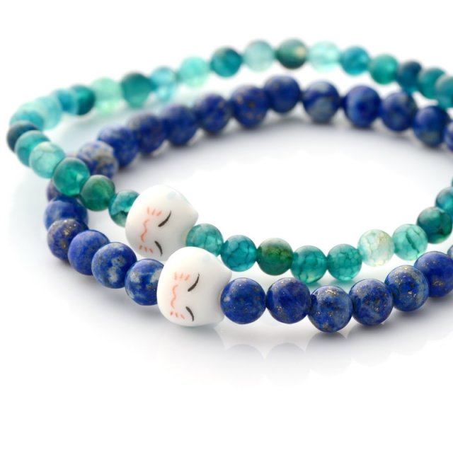 Minimalistyczna, delikatna, zabawna i urocza bransoletka wykonana z małych kuleczek lapis lazuli (4mm) oraz małego chińskiego kotka szczęścia.