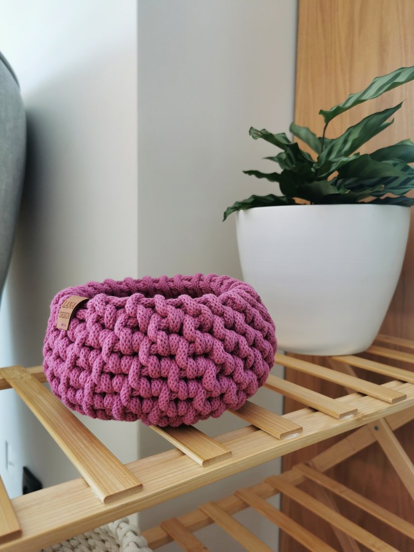 Ten mały pleciony koszyk z bawełnianego sznurka to drobny detal, który wprowadza do domu porządek i naturalne ciepło. Ręcznie wykonany, z gęstym i starannym splotem, jest jednocześnie trwały i miękki w odbiorze. Jego prosta forma sprawia, że pasuje do wielu wnętrz – od minimalistycznych, przez skandynawskie, aż po rustykalne i boho.