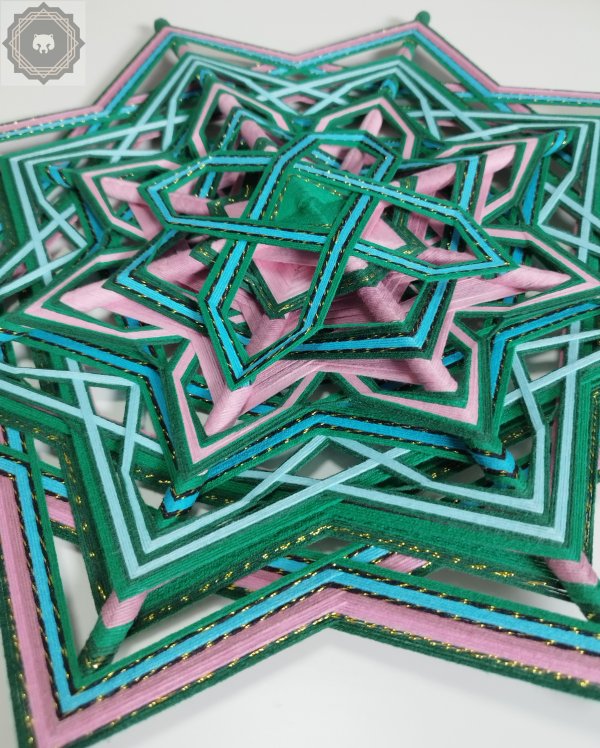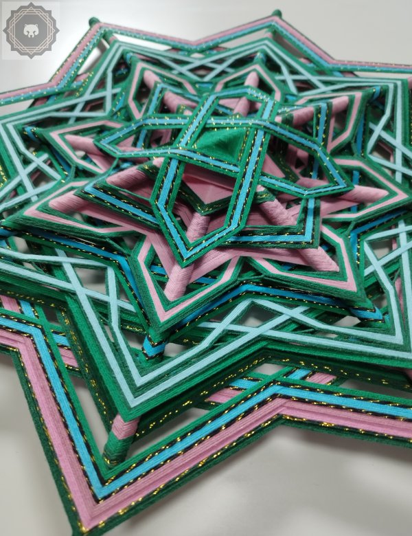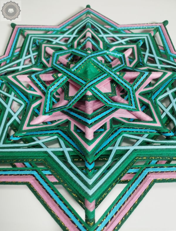 Dzięki misternej technice Ojo de Dios, Mandala posiada strukturę 3D,