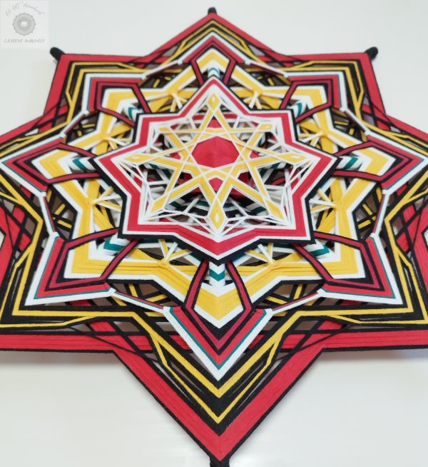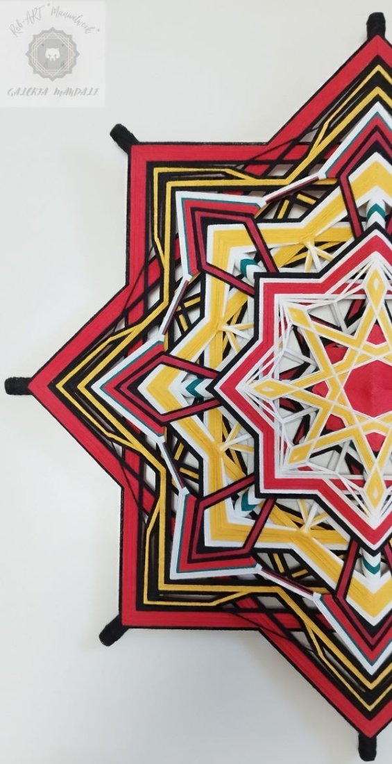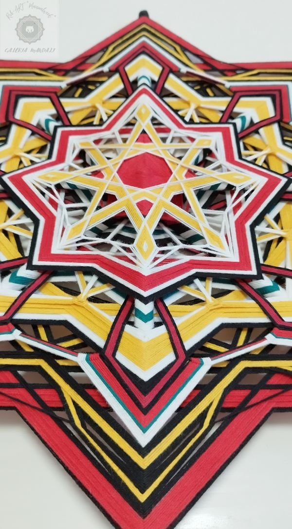 Mandala łączy dynamiczną energię Ognia (wyrażoną w nasyconych czerwieniach i żółciach),