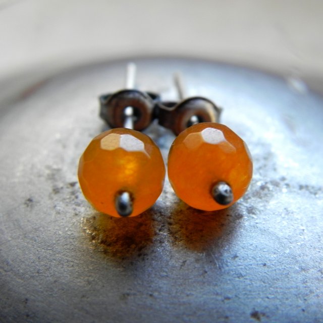 Kolczyki sztyfty wykonane z oksydowanego srebra próby 925 oraz jadeitów fasetowanych wielkości 6 mm.