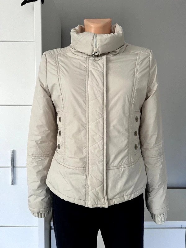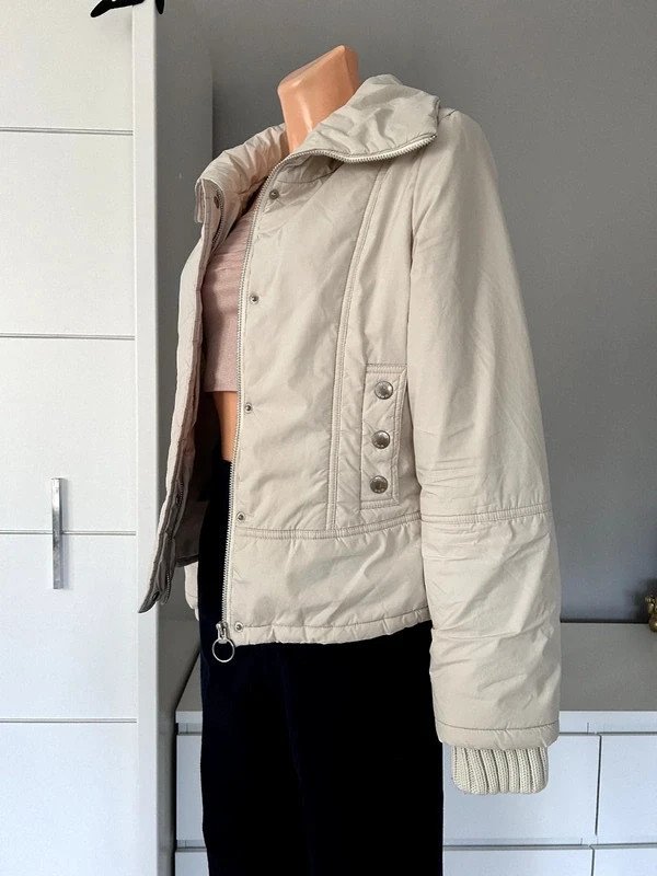 Kurtka marki mango, rozmiar z metki do M 38. Posiada podszewkę. Jest zapinana na zamek i napy. Została wykonana w 55% z bawełny. Stan widoczny na zdjęciach.