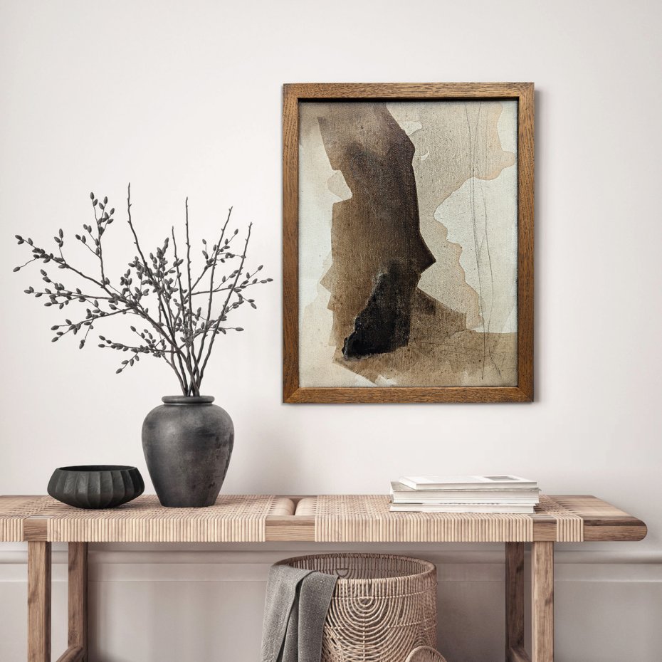 Ascetyczna kolorystyka, oparta na naturalnych, przygaszonych tonach ziemi, wzmacnia wrażenie pracy jako obiektu odnalezionego, fragmentu czegoś większego, co uległo erozji. Obraz staje się tu formą archeologii gestu.
