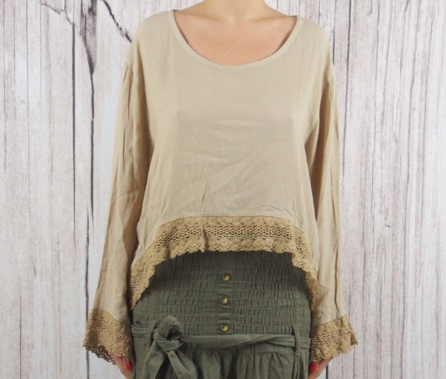 Oversizowa bluza z wiskozy wykonczona na szydełku.