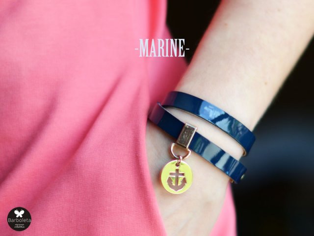 Edycja limitowana -MARINE- Efektowna bransoletka z wysokiej jakości skóry włoskiej naturalnej lakierowanej w pięknym odcieniu indygo