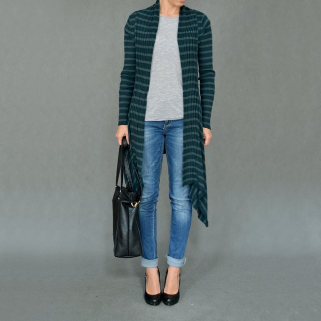 Bardzo miły w dotyku asymetryczny sweter w morskich kolorach. Marka MARKS$SPENCER.