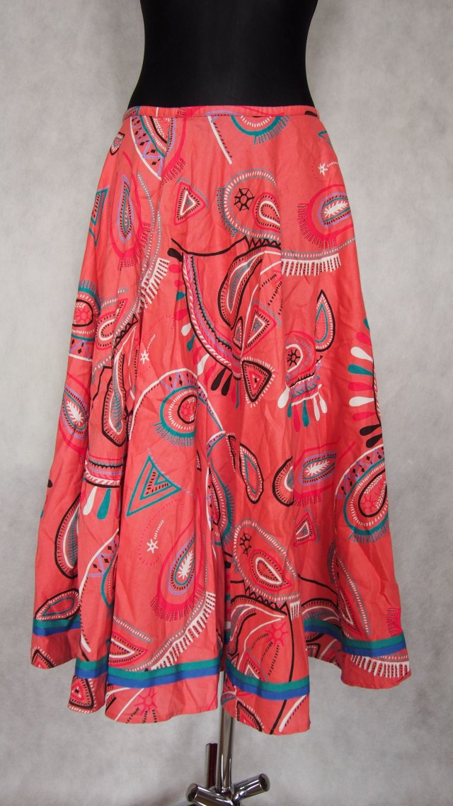 Piękna bawełniana (bawełna sztywna, grubsza) spódnica z etnicznym printem firmy M&S. Spódnica ma na dole lamówkę. Szyta z pełnego koła.