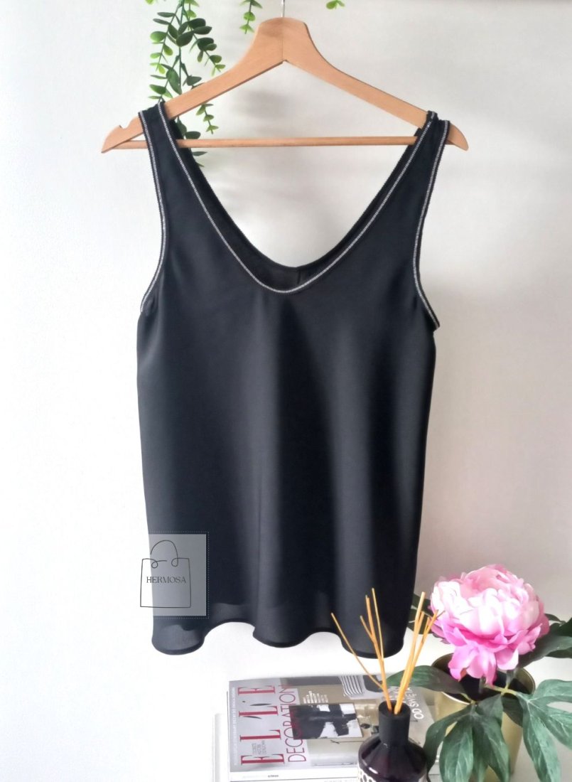 Wiskozowy czarny top Marks& Spencer z dekoltem V