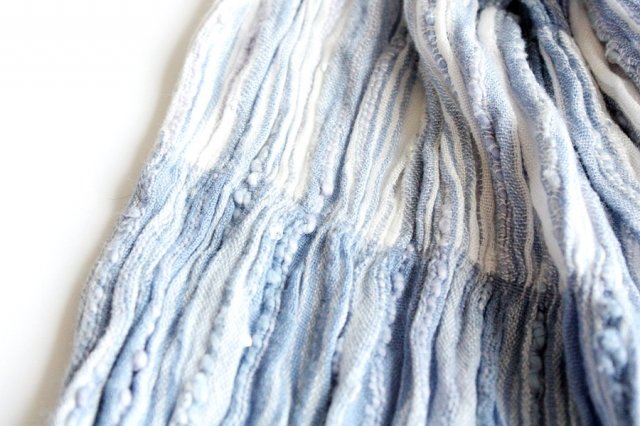 Miękka, miła w dotyku szal ozdobiony maleńkimi, subtelnymi cekinami o minimalnym błysku. Szal jest marszczony niewidocznymi, delikatnymi gumkami.
