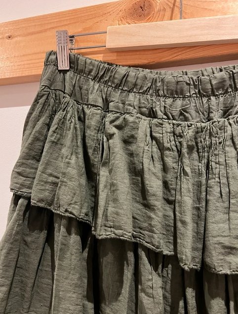 długa dwuwarstwowa spódnica z falban na dzianinowym spodzie cienka mięta bawełna styl Rundholz Moyuru Annette Gortz długość 95 pas 38/55x2 świetna stylowa unikatowa