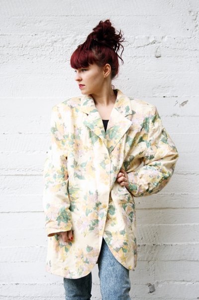 Wiosenno-letnia,długa marynarka w kwiaty, na podszewce,posiada poduszki. rozmiar l/xl