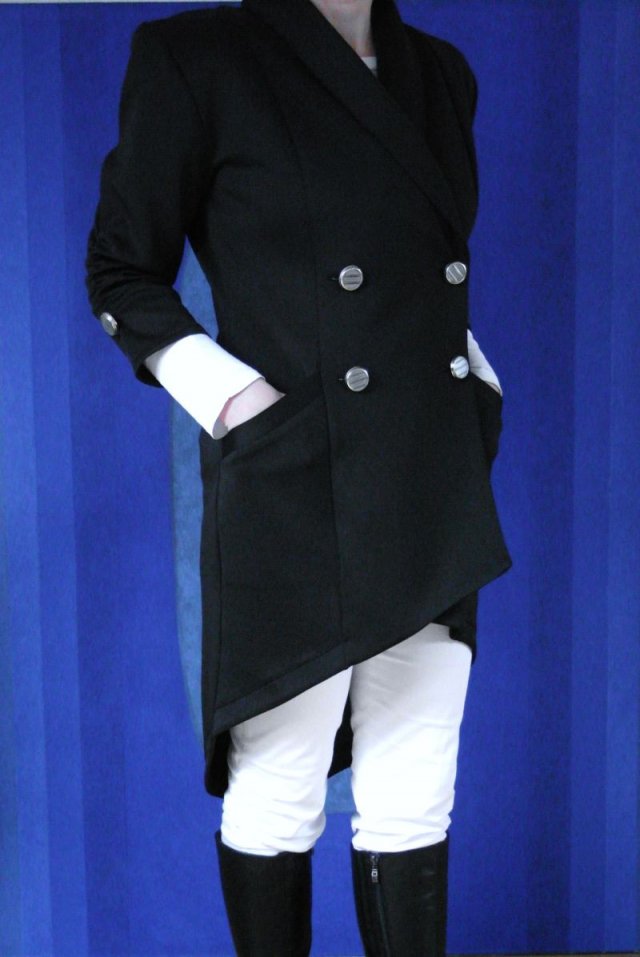 Nowa, bardzo zgrabna marynarka-frak, rozm.M, kolor czarny.