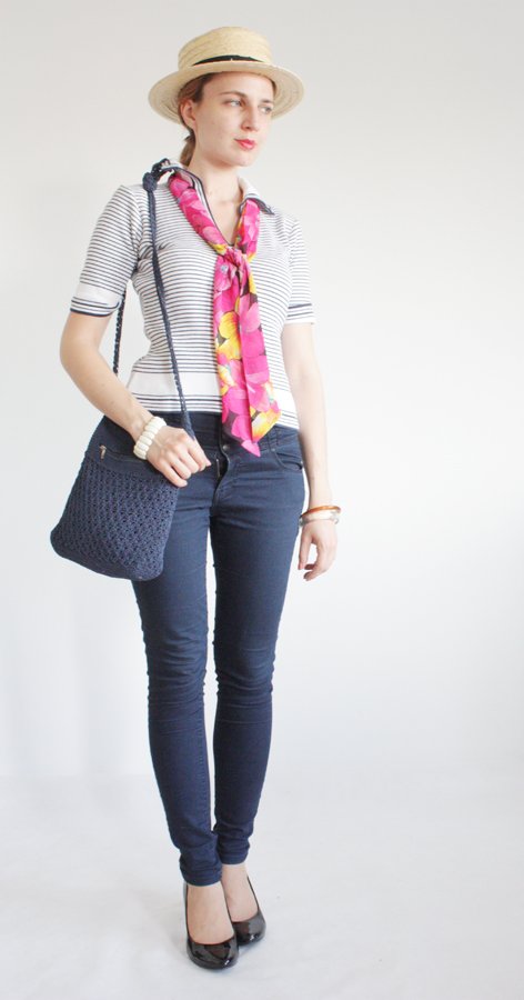 Bawełniana bluzka w marynarskie paski firmy H&M.